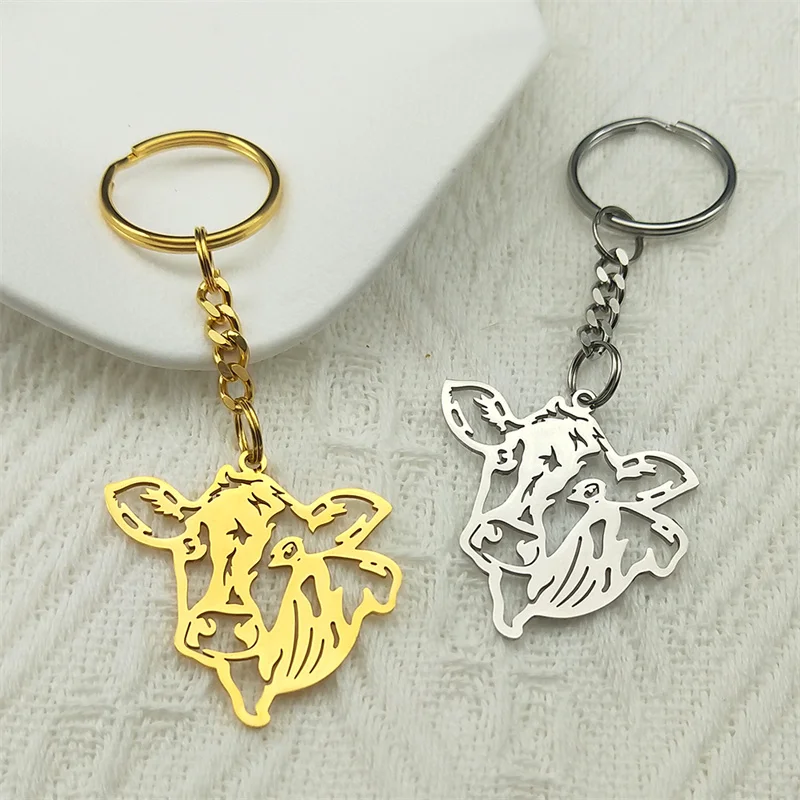 - Animal Cow Key Chain for Women Men Stainless Steel Gold Color Hollow Cute Calf Bull Bag Decor Key Ring Jewelry