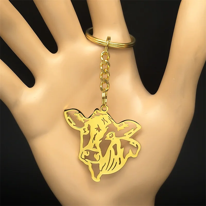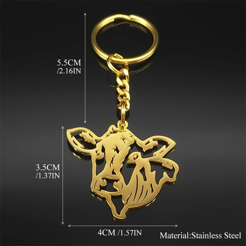 Cow Key Chain for Women Men Stainless Steel Gold Color
